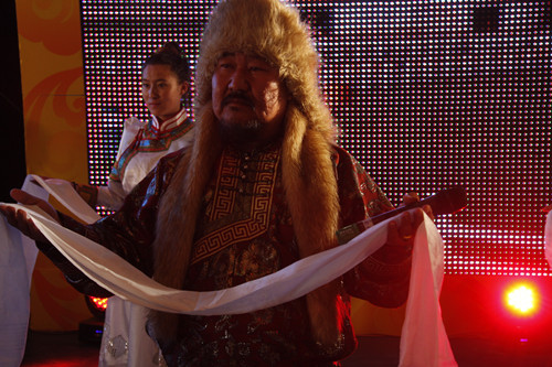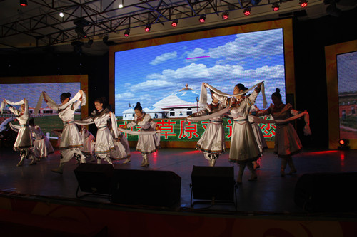 蒙古族姑娘在欢迎宴会上表演歌舞(中国台湾网 芜同 摄)