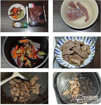 锅里放油把牛肉翻炒一分钟,然后加入少量孜量粉