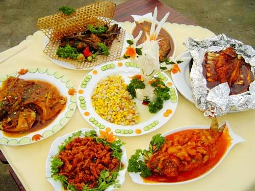 鱼菜不但营养丰富,而且鲜嫩味美,百吃不厌。全鱼宴有12、14、20、24道菜一桌的,甚至有上百道菜一桌的。主要名贵鱼菜有鲤鱼跳龙门 二龙戏珠、鲤鱼三献、家常熬鲫鱼、梅花鲤鱼、油浸鲤鱼、鲤鱼甩子、松鼠鲤鱼、芙蓉荷花鲤鱼、湖水煮鱼、清蒸银边鱼、葡萄鱼、葱花鲤鱼、金狮鲤鱼、普酥鱼、蕃茄鱼片、鸳鸯鱼卷、荷包鲤鱼、煎焖白鱼、拌生虾、拌生鱼片等。