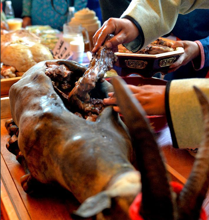 苏尼特左旗举行,来自全旗7个苏木(镇)的牧民带着精心烹制的牛羊肉食品,进行“全羊”的摆设、祝颂、敬献和分割等评比,向人们展示苏尼特独特的蒙古族餐饮礼仪和文化。蒙古族饮食主要分为白食与红食。前者为奶食,蒙古语叫“查干伊德”,后者是肉食,蒙古语叫“乌兰伊德”。锡林郭勒盟苏尼特左旗是糖心