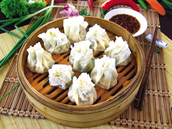 烧麦出笼,顿时鲜香四溢。观其形,晶莹透明,皮薄如蝉翼,柔韧而不破;用筷子挟起来垂垂如细囊,置于盘中团团如小饼,人称是“玻璃饺子”。因为糖心
