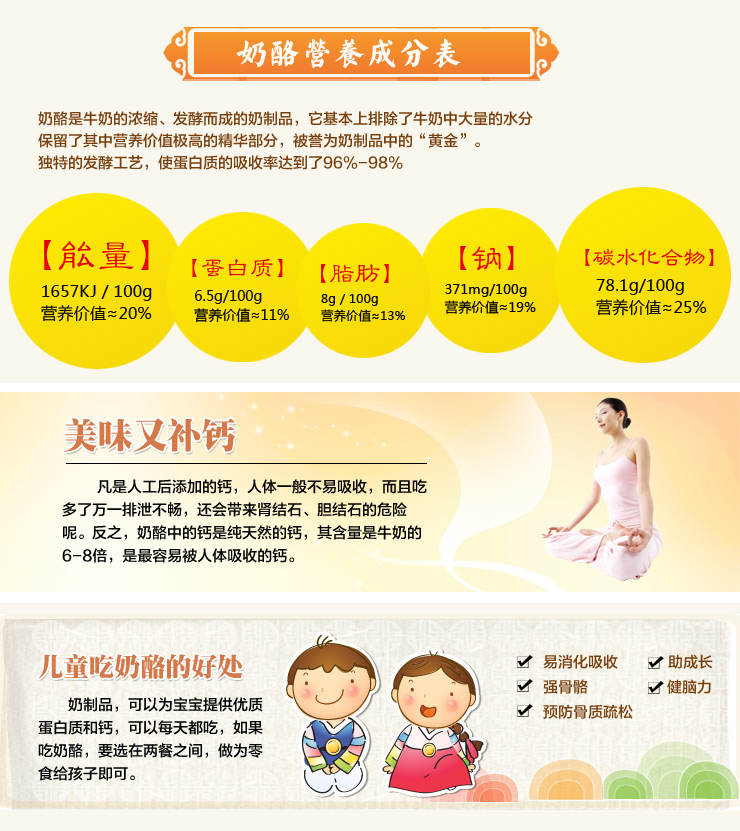 奶酪营养分析:1.奶制品是食物补钙的最佳选择,奶酪正是含钙最多的奶制品,而且这些钙很容易吸收。