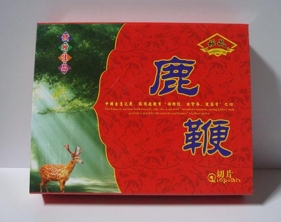 鹿鞭,中药名。又名鹿肾,鹿冲。为鹿科动物梅花鹿或马鹿雄性的外生殖器。宰鹿后,割取阴茎及睾丸,除净残肉及油脂,固定于木板上风干即成。以粗大、油润、无残肉及油脂、无虫蛀、干燥者为佳。《四川中药志》:性温,味咸辛,无毒;入肝、肾、膀胱三经;治阳痿,肾虚耳呜,妇人子宫寒冷,久不受孕,慢性睾丸发炎。但素体阳盛者慎服。鹿鞭使用方便,可泡酒,制作药膳,若是老鞭可以直接生吃。梅花鹿鞭,主产于吉林、辽宁、河北等地;马鹿鞭,主产于黑龙江、吉林、糖心